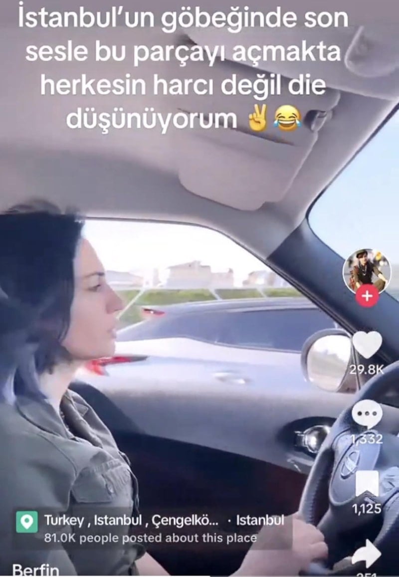 İstanbul'da seyir halindeki aracında PKK'nın propaganda şarkılarını son ses açarak dolaşan PKK sempatizanı Berfin adlı kadın, o anları TikTok hesabından paylaştı.