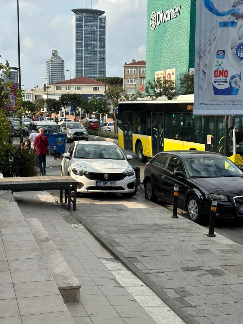 Üsküdar'da araç ve yaya geçişinin yoğun olduğu saatte aracını kaldırıma park eden sürücü, insan hayatını tehlikeye attı.