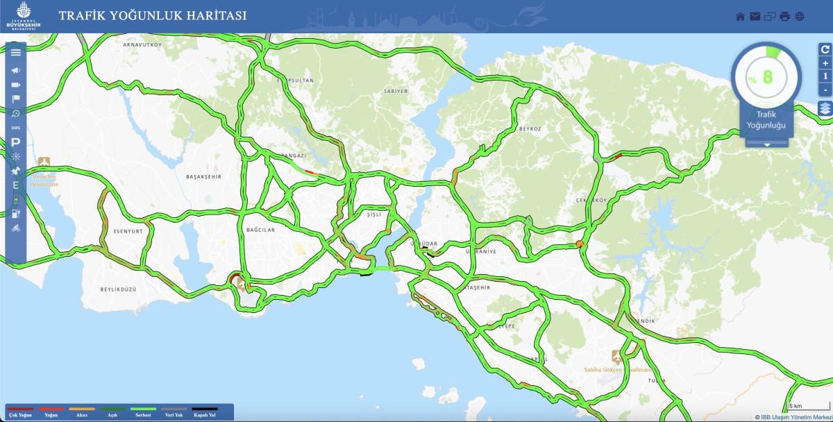 Arefe günü İBB’nin trafik haritasına göre saat 10.30 sıralarında yoğunluk yüzde 8 olarak ölçüldü.