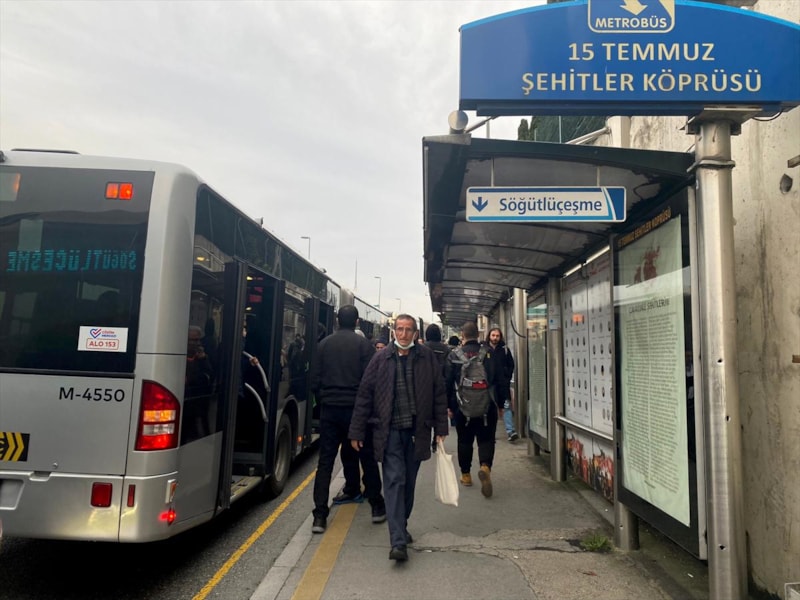 15 Temmuz Şehitler Köprüsü durağında arızalanan metrobüs nedeniyle uzun araç kuyruğu oluştu, seferlerde aksama yaşandı.