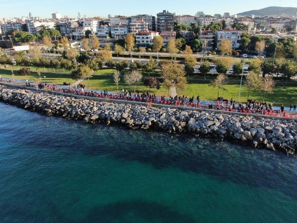 Kadıköy’de Fenerbahçe Orduevi ile Bostancı Sahili arasında kilometrelerce uzunlukta saygı zinciri oluşturuldu.