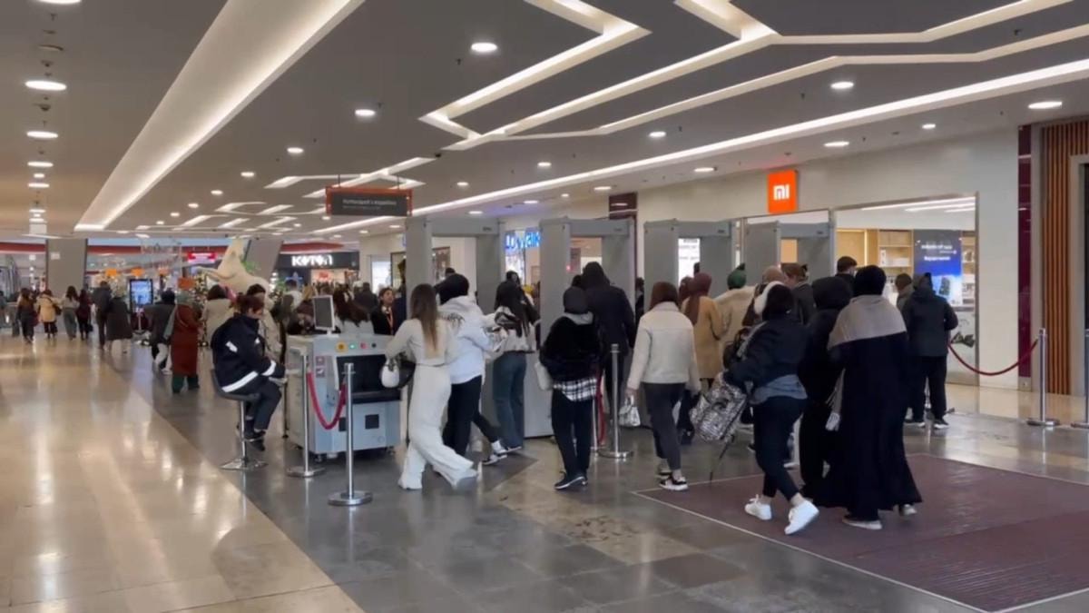 Alışveriş merkezi açılış saatine kadar bekleyenler, kapının açılmasıyla koşarak içeri girdi.