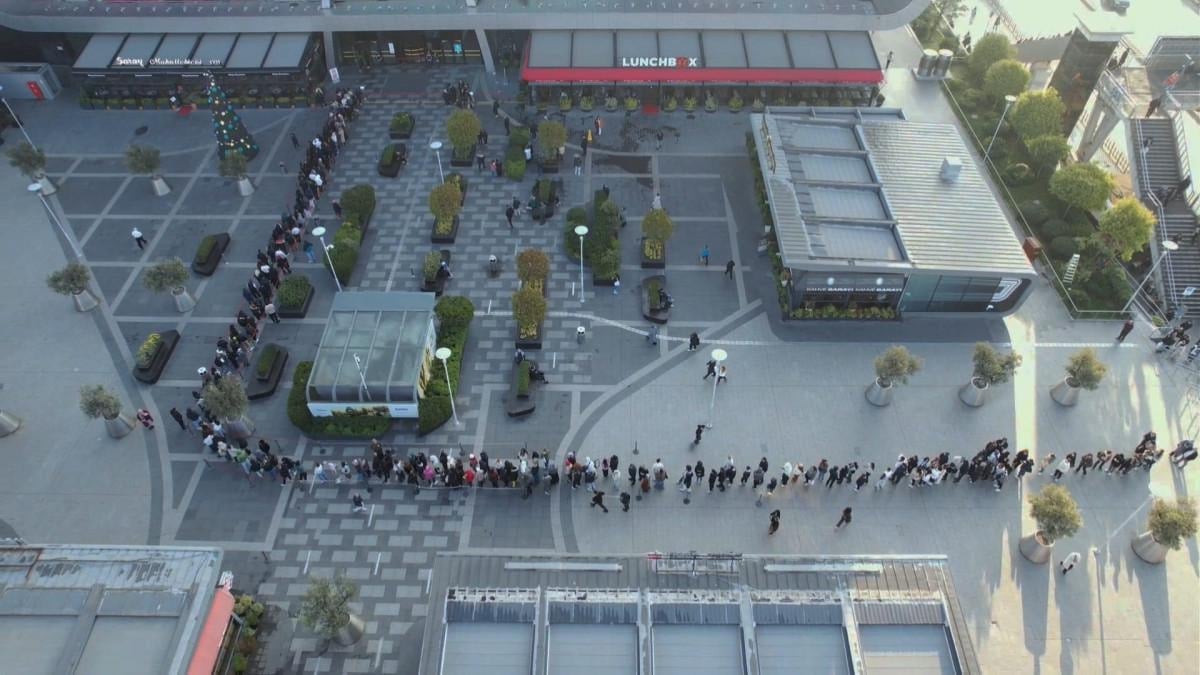 Esenyurt’ta bir Alışveriş Merkezi’nin önünde vatandaşlar, sabah erken saatlerden itibaren sıraya girdi.