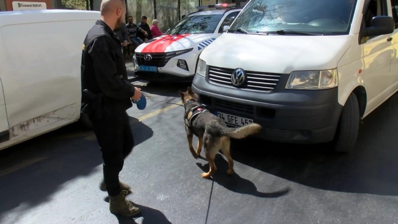 Narkotik köpeği şüpheli görülen araçlarda arama yaparak denetimlere destek verdi.