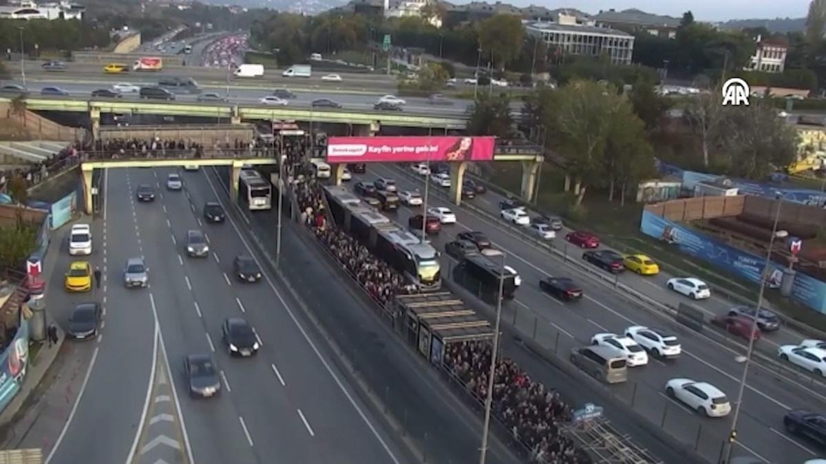 Altunizade'deki köprüde metrelerce yolcu kuyruğu gözlenirken M-5 Üsküdar-Samandıra Metro durağındaki yoğunluk dikkati çekti.