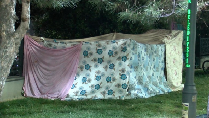 Bahçelievler'de bulunan bir parkta, geceyi dışarıda geçiren vatandaşların bazıları da kurulan çadırlarda kalırken, kendine çadır bulamayanlar ise battaniye ve örtülerle sığınacak alanlar oluşturdu.