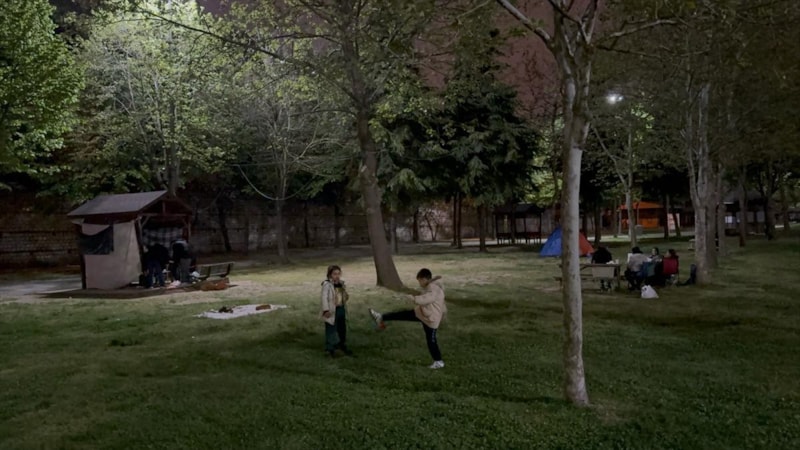 Ailesiyle bahçede kurdukları çadırda kalan Serkan Özkan, "Çocuklarımız çok korktu, onun için buradayız. Binalarımız eski, yıpranmış. Büyüklerimize söylüyorum, bir an önce kentsel dönüşümün üstesinden gelsinler. Mezarlıkta, tabutlarda yaşıyoruz" diye konuştu.