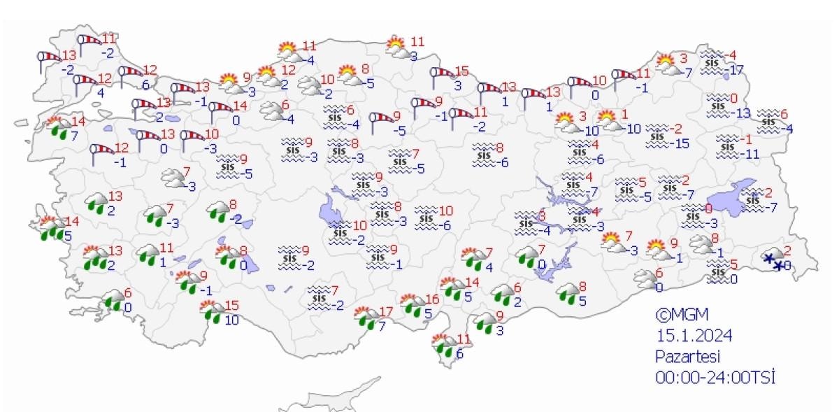 Beş büyük kentte de hava güneşli ama hala soğuk. İstanbul ve Bursa 7, Ankara 3, İzmir 9, Antalya 15 derece. Ankara gece -4 dereceye inecek. Pazartesi batıda sıcaklık 5 derece artıyor.