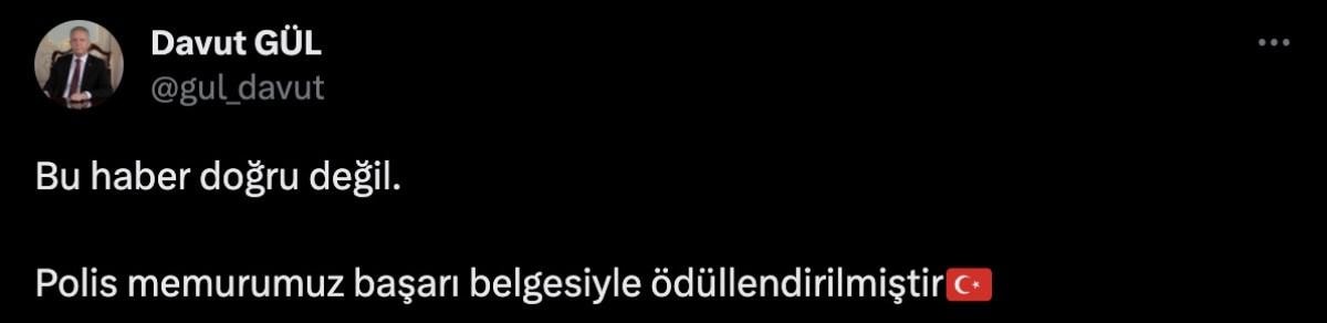 Vali Gül, iddianın tamamen asılsız olduğunu ve polis memurunun müdahalesi nedeniyle ödüllendirildiğini duyurdu.