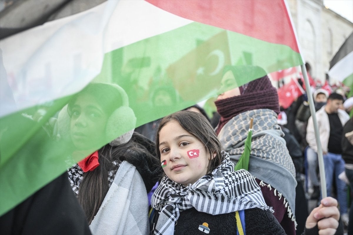 İstanbul'daki Galata Köprüsü'nde düzenlenen 'Büyük Gazze Yürüyüşü'ne yüz binlerce kişi katıldı.