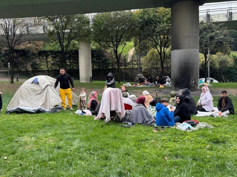 Yeşil alanlara battaniye ve çadırlarla çıkan İstanbul sakinleri geceyi dışarda geçirmek için hazırlık yaptı.
