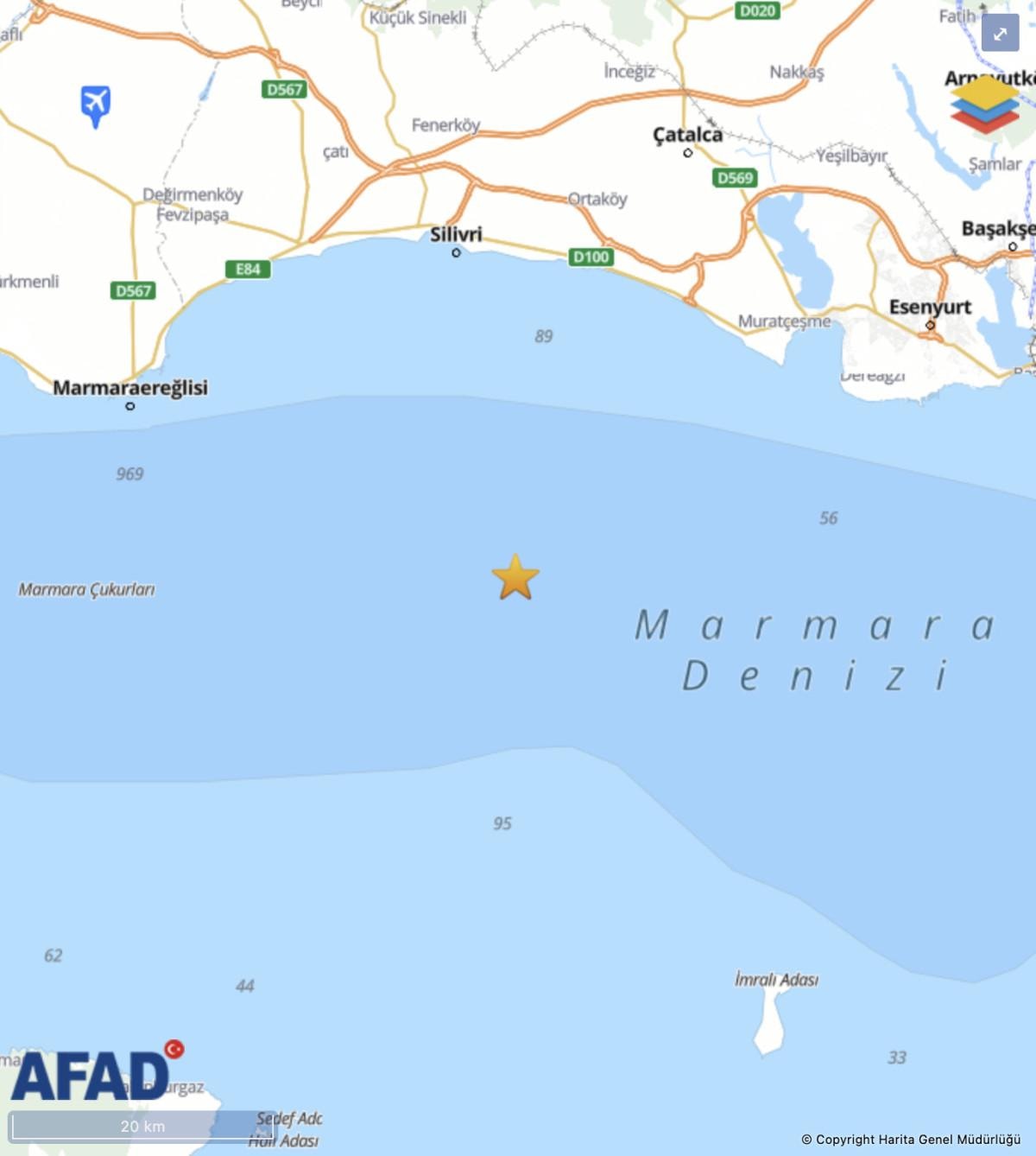 Depremin merkez üssü ise Silivri olarak bildirildi.