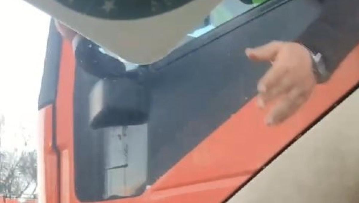 Uzun süre devam eden tartışmada ise kendinin videosunun çekildiğini fark eden tır şoförü, öfkelenerek küfürler edip, el hareketi çekti.