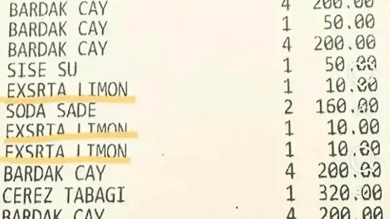 Ticaret Bakanlığı, “çayın yanına verilen limona 10 TL ücret alındı” iddiaları üzerine başlatılan incelemenin sonuçlarını açıkladı. Bakanlık ekiplerinin yaptığı denetimde, Kuzguncuk’ta faaliyet gösteren işletmeye 37 bin 992 TL idari para cezası uyguladı.