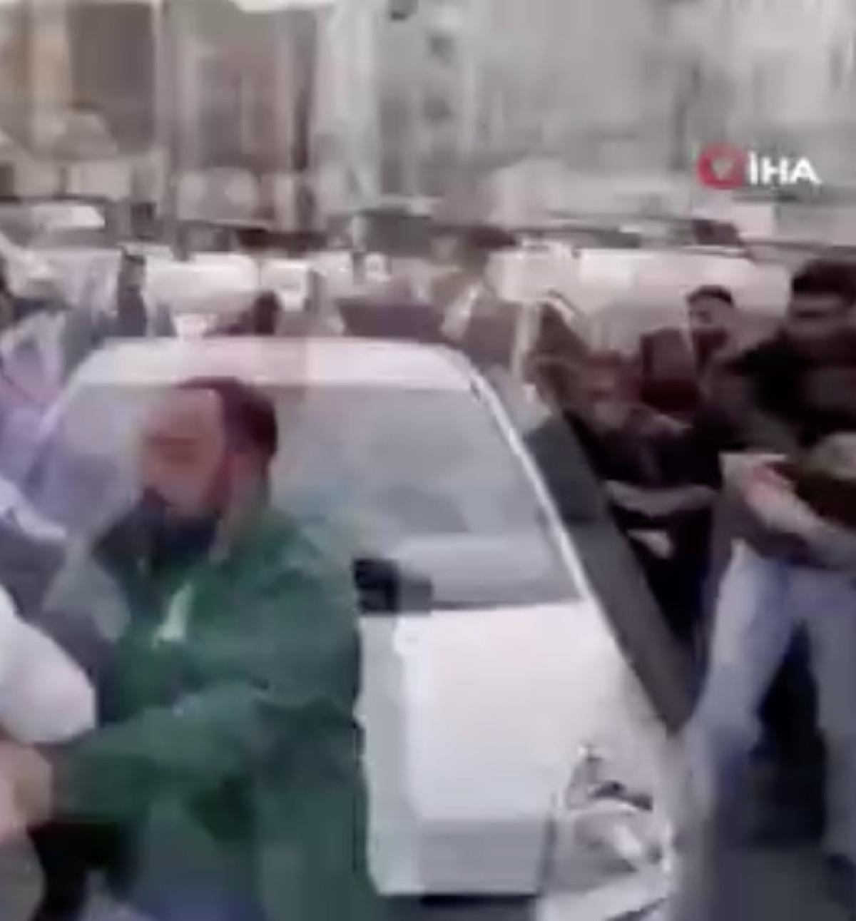 Bunun üzerine saldırıya geçen eylemciler vatandaşa linç girişiminde bulundu. Vatandaşın etrafını saran eylemciler arabaya tekme ve yumruklarla saldırdı.