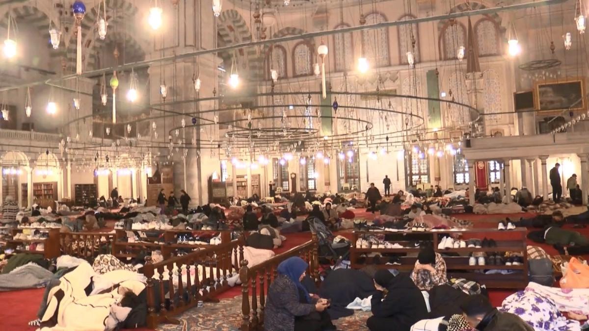 Fatih Camii’ne gelen onlarca kişi, cami içinde ve avlusunda uyudu. Bazı kişilerin banklarda uyuduğu görülürken, bazı kişilerin ise cami bahçesine çadır kurduğu görüldü.