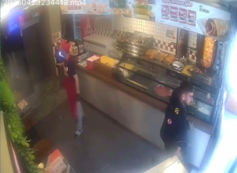 Sultangazi'de döner ustası adam, ailesini kurtarmak için restoranın üst katına koştu. Döner ustasının, deprem sırasında ailesini dışarı çıkardığı anlar, iş yerinin güvenlik kamerasına yansıdı.
