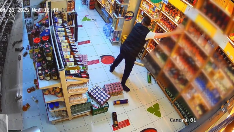 Deprem sırasında bir tekel bayi sahibi, dışarıya çıkıp canını kurtarmak yerine raflardaki ürünleri tutmaya çalıştı.