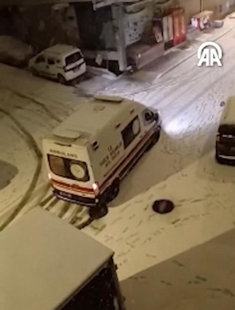 Esenyurt'ta da bir ambulans şoförü, karla kaplı ve buz tutan yolda ilerlemekte güçlük çekti.