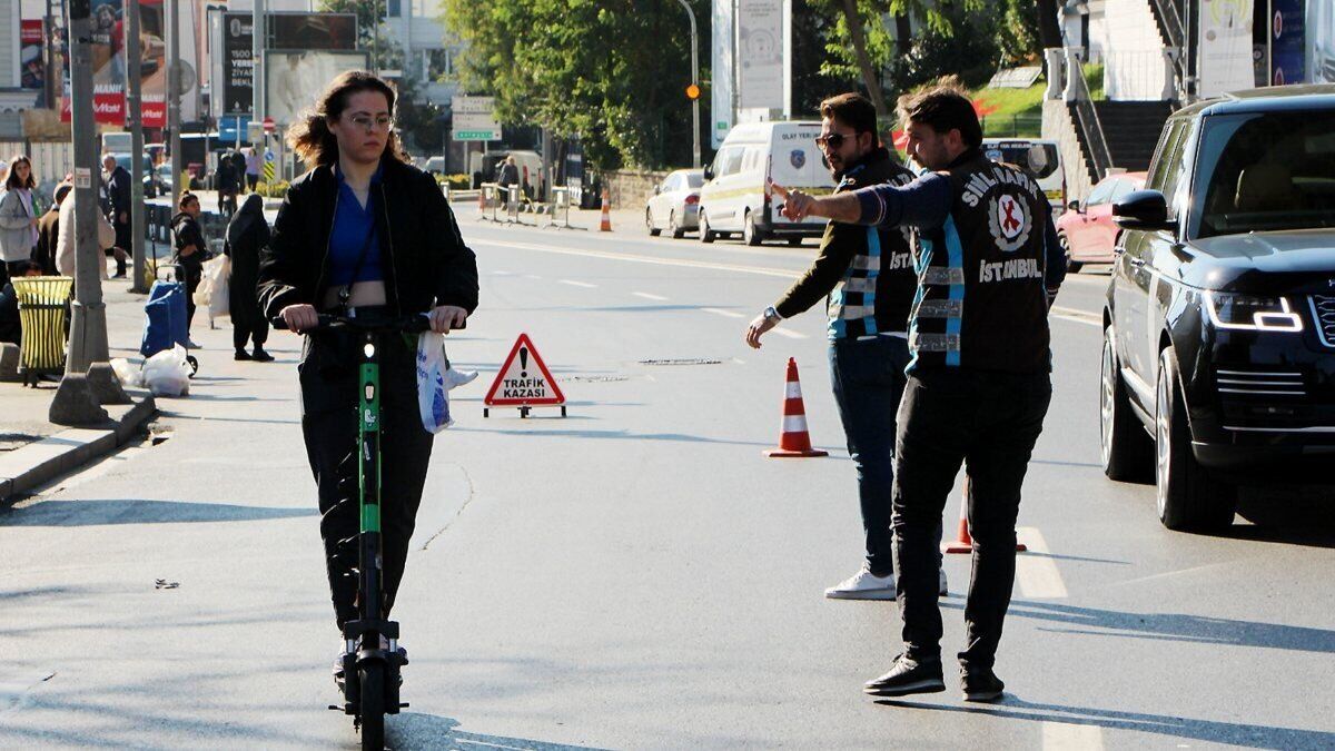 DHA'nın haberine göre İstanbul'un Beşiktaş ilçesi Muallim Naci Caddesi'nde, elektrikli skuter sürücülerine yönelik denetim yaptı.
