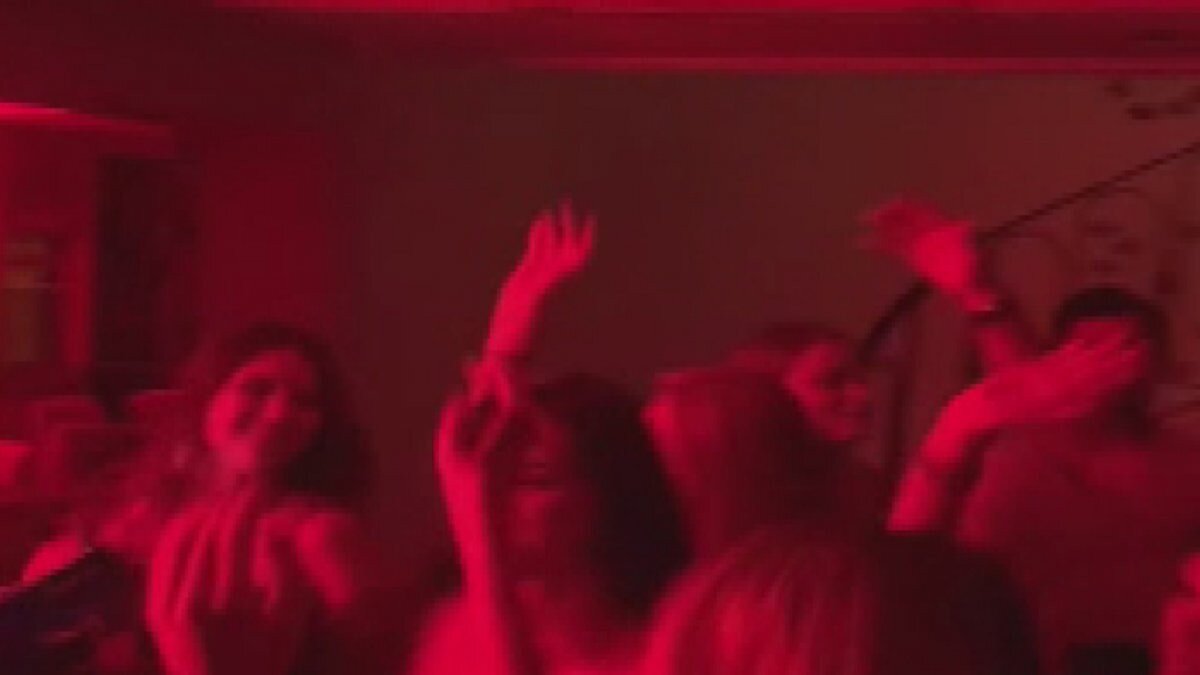 Partiye katılanların, müzik eşliğinde eğlenirken sosyal mesafe kuralına uymadıkları ve maske takmadıkları görüntülere yansıdı.
