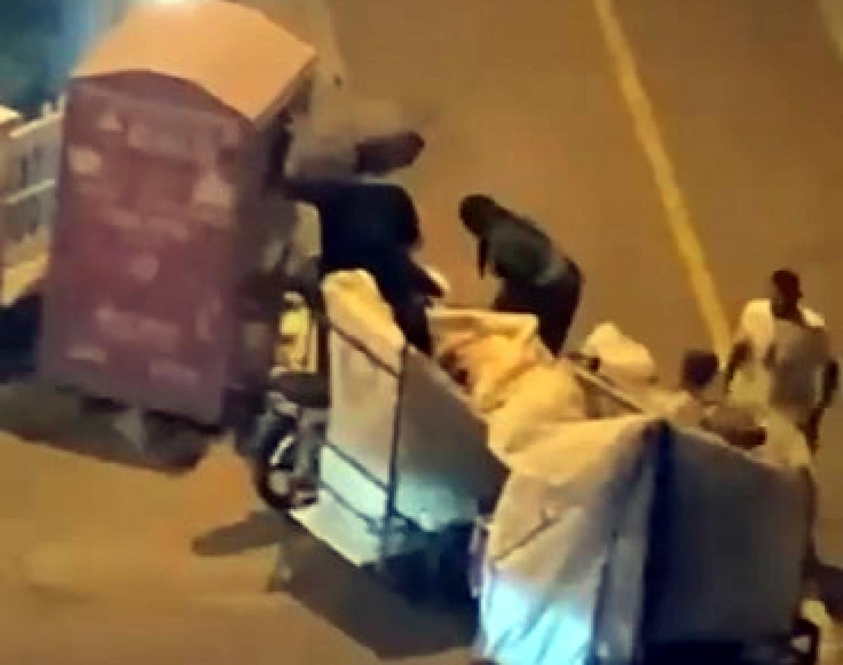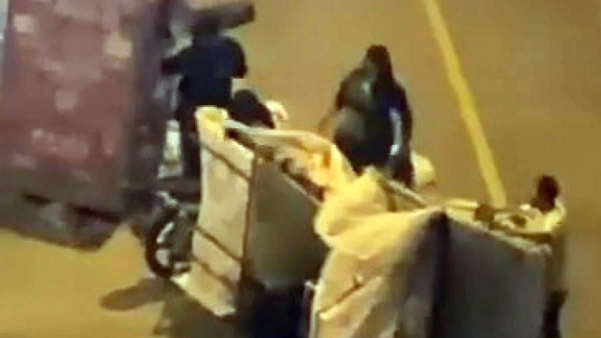 Giysileri kağıt topladıkları el arabalarına yerleştiren 4 kişi, çocuğu da kumbaradan dışarı çıkararak sokaktan hızla uzaklaştı.