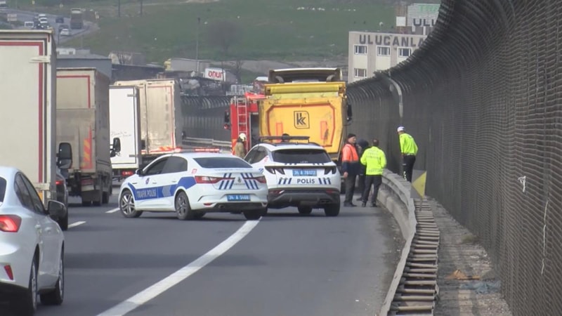 Hafriyat kamyonunun şoförü, dorse lastiklerinden duman çıktığını gördü ve aracı emniyet şeridinde durdurdu.