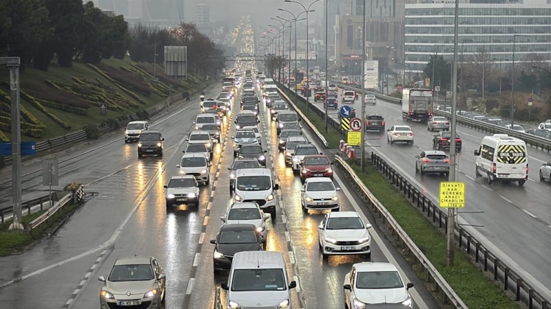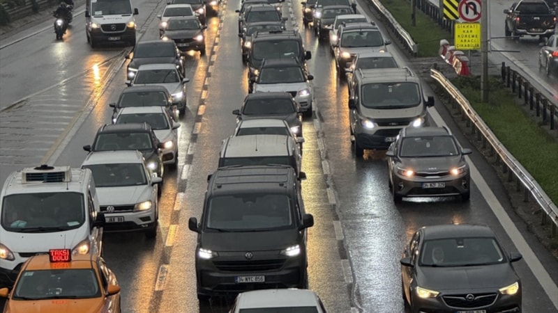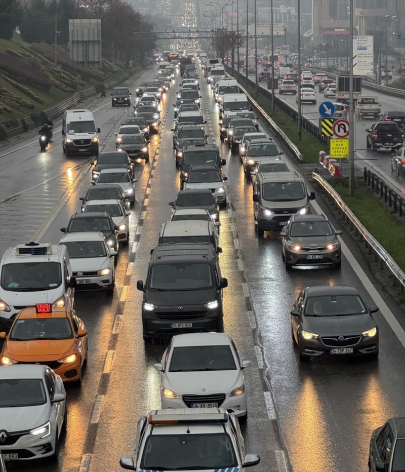İstanbul'da haftanın ilk günü, sabah saatlerinde şiddetini artıran yağışın da etkisiyle trafik yoğunluğu oluştu.
