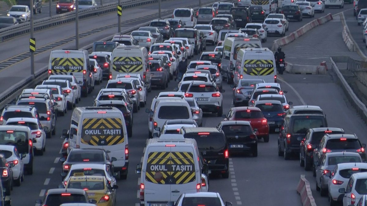 Araçlar zaman zaman durma noktasına gelirken, İBB'nin trafik haritasına göre yoğunluk yüzde 49'a ulaştı.