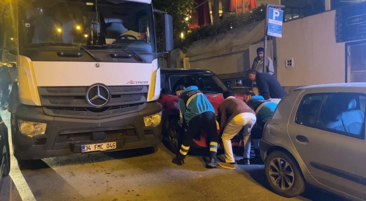 Araç sahibinin bulunamaması üzerine, vatandaşlar aracı elleriyle yerinden kaldırarak kenara çekti.