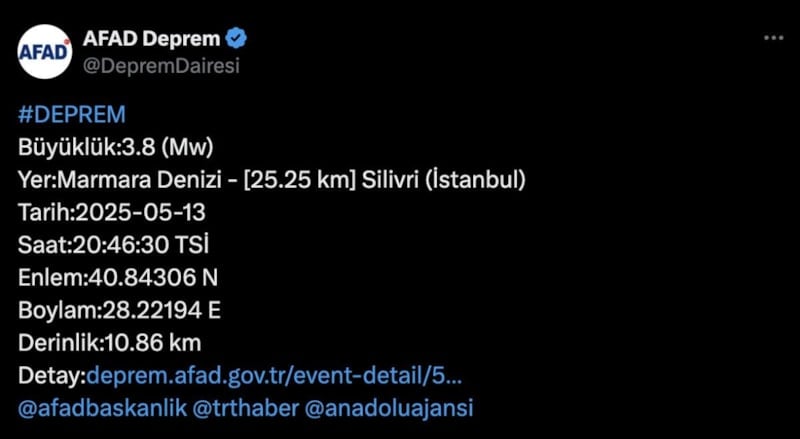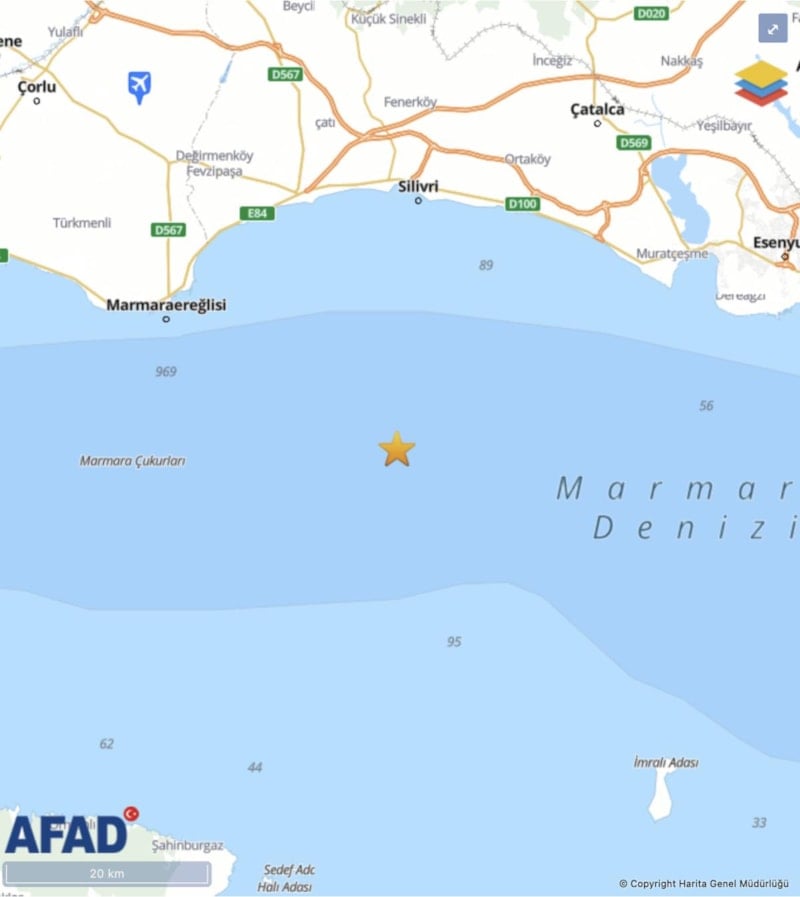 AFAD tarafından yapılan açıklamada, Marmara Denizi'nde 3.8 büyüklüğünde korkutan bir deprem meydana geldi.