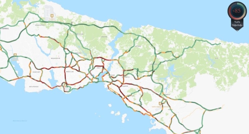 İstanbul Büyükşehir Belediyesi Cep Trafik Haritası verilerine göre, haftanın üçüncü iş günü akşam saatlerinde kent genelinde trafik yoğunluğu yüzde 85'e ulaştı.