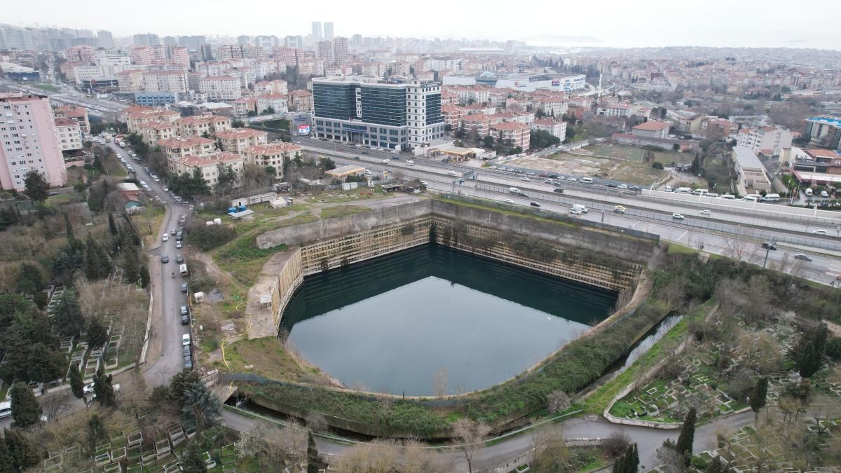 Aradan geçen zaman içerisinde temel çukuru, yağmur suyu ile dolarak adeta göle döndü.