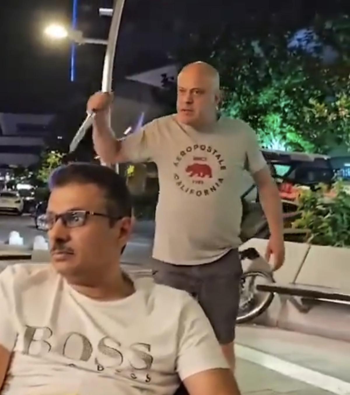 Elinde bıçak olan bir provokatör, kafede oturan, aralarında Türkiye'ye milyonlarca dolar yatırım yapan iş insanları Khaled Fouzan ve İbrahim Al Hudaithi'nin de aralarında bulunduğu Arap turistleri tehdit etti.