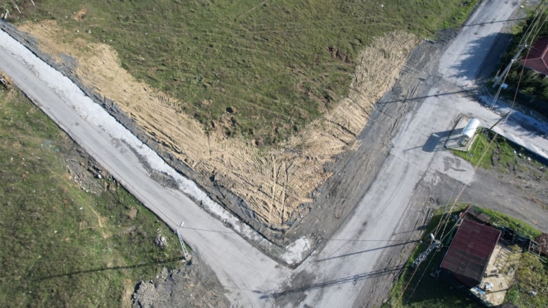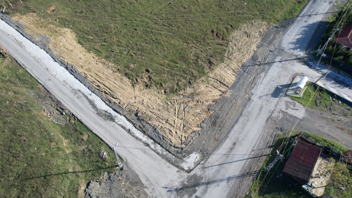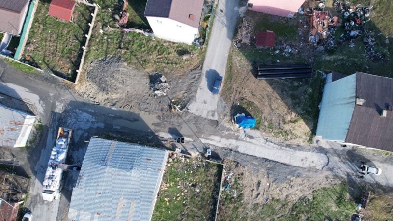 Mahalledeki yolların bozuk hali ve bırakılan borular, drone kamerasıyla da görüntülendi.