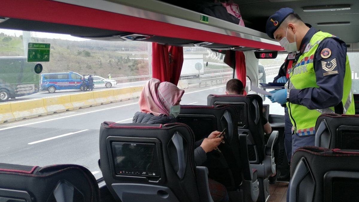 Tek tek durdurulan şehirlerarası yolcu otobüslerinde ilk olarak yolculara içinde maske ve dezenfektan bulunan temizlik kiti dağıtıldı daha sonra da yolcuların kimlik, HES kodları ve seyahat izin belgeleri kontrol edildi.