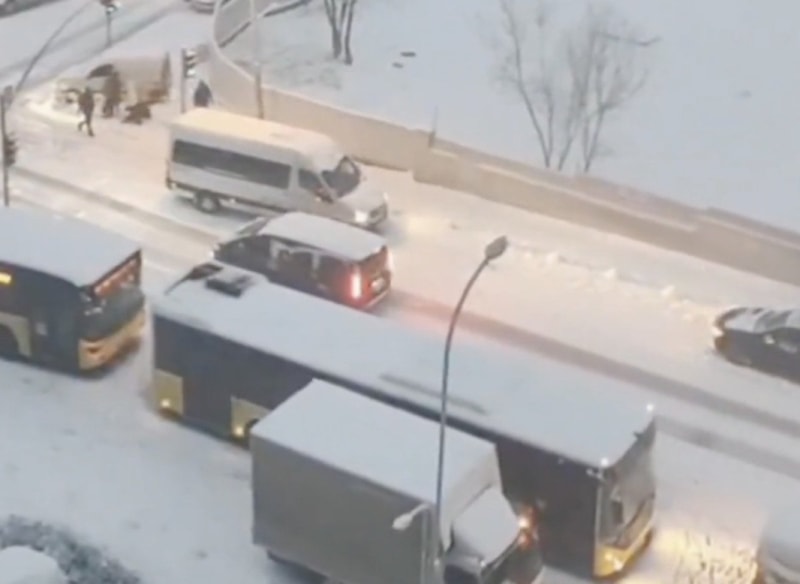 Aynı şekilde İETT otobüslerinin de yollarda kaldığı hatta vatandaşların ilerlemesi için otobüsleri ittiği görüldü.