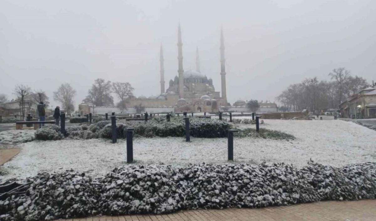 Edirne'de öğlen saatlerinde başlayan karla karışık yağmur, akşam saatlerinde yerini kar yağışına bıraktı.
