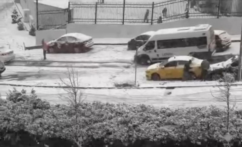 İstanbul'da kar yağışı nedeniyle kayganlaşan yollarda kazalar art arda gelirken o anlar kameralara yansıdı.