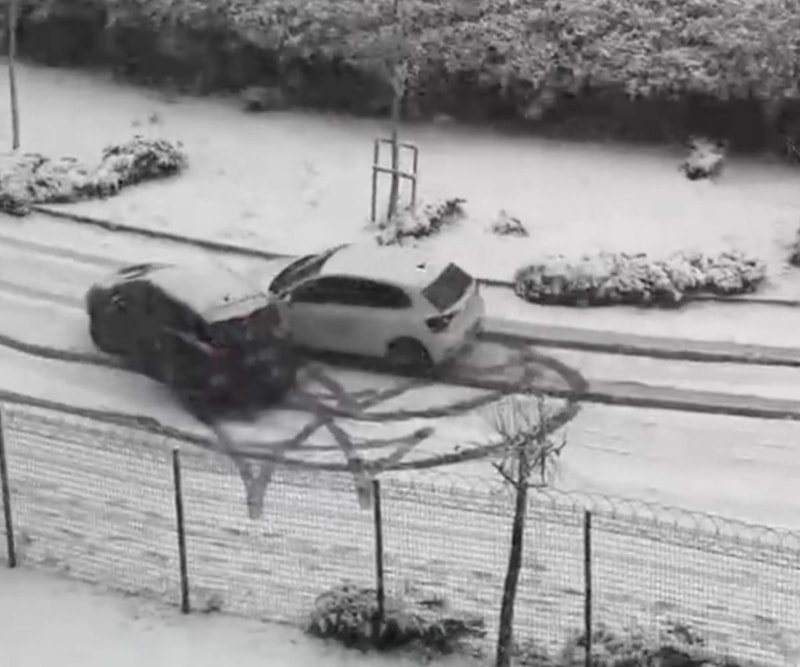 Maslak'ta sürücülerinin direksiyon hakimiyetini kaybettiği otomobillerin kaza yaptığı anları, çevredekiler cep telefonu kamerasıyla kaydetti.