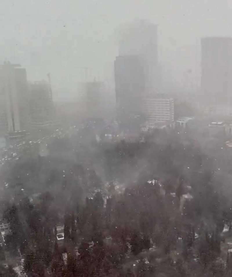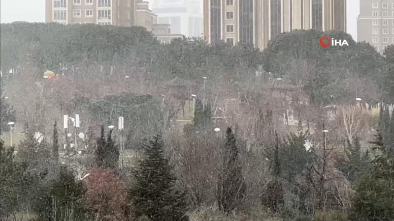 Zincirlikuyu'da kaydedilen görüntüde kar yağışının şiddetini artırdığı görüldü.