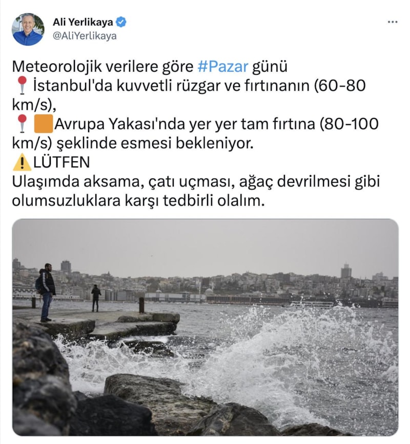 Bunun yanı sıra yapılan uyarılarda, fırtınayla birlikte ulaşımda aksamalar, çatı uçması, ağaç devrilmesi, kar yağışı olan bölgelerde tipi gibi olumsuzluklara karşı dikkatli ve tedbirli olunması gerektiğine yer verildi.