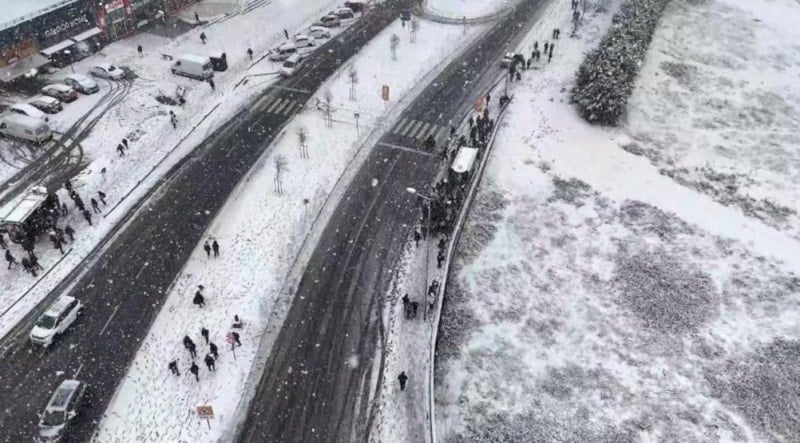 Bir kişi, evinin penceresinden arka arkaya sıralanan otobüsleri cep telefonu kamerasıyla kaydederek, "Burası otobüs son durağı gibi oldu. Allah yolda kalanlara yardım etsin ama günler öncesinde belirtilen kar yağışı uyarısı pek dikkate alınmamış gibi duruyor. Yazık değil mi?" ifadelerini kullandı.