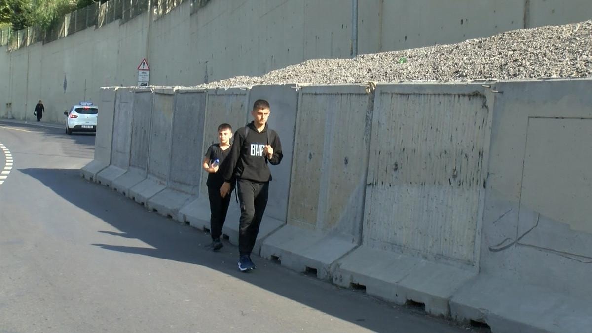Çevredeki okullarda okuyan öğrenciler ise beton bariyer ve kumun kaldırımı kapatması nedeniyle yolda ilerlemek zorunda kalıyor.