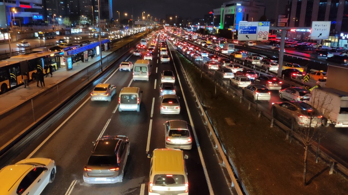 Kısıtlamanın başlamasına 1 saat kala trafikte ve metrobüs istasyonlarında yoğunluk oluştu.