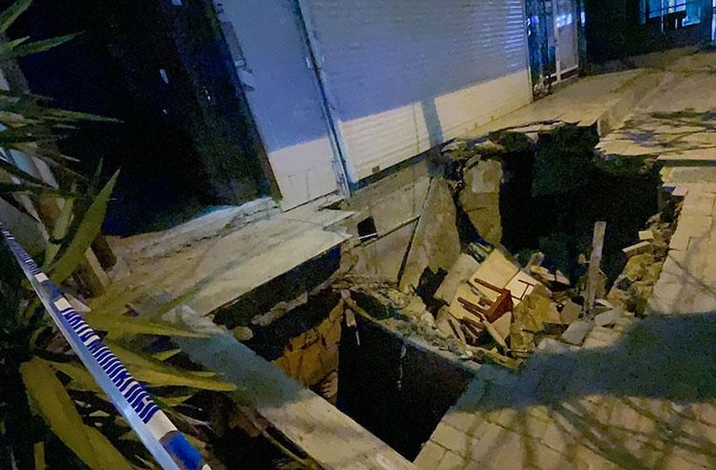 Siyavuşpaşa Mahallesi Küçük Çınar Sokak'taki 45 yıllık binaya sonradan eklendiği öğrenilen ve kaldırımın altında kalan kömürlük, büyük bir gürültüyle çöktü.
