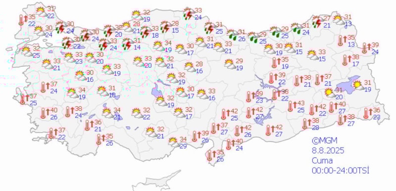 Meteoroloji Genel Müdürlüğü'nün son hava durumu tahminlerine göre yurt genelinde sıcaklıklar yüksek seviyelerde kalacak.