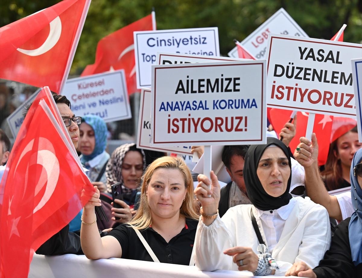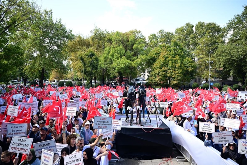 Yaklaşık 400 sivil toplum kuruluşunun destek verdiği etkinlik için bir araya gelen kalabalık, "Dursun bu Hayasızca Akın", "Aileyi korumak milli güvenlik meselesidir", "Sosyokültürel teröre dur de" , "Ailemize anayasal koruma istiyoruz" , "Aileye savaş açanlara geçit verme", "Aile hedefte başını çevirme", "Çocuklar için sesini yükselt" yazılı dövizler taşırken, LGBT dayatmasına karşı sloganlar attı.