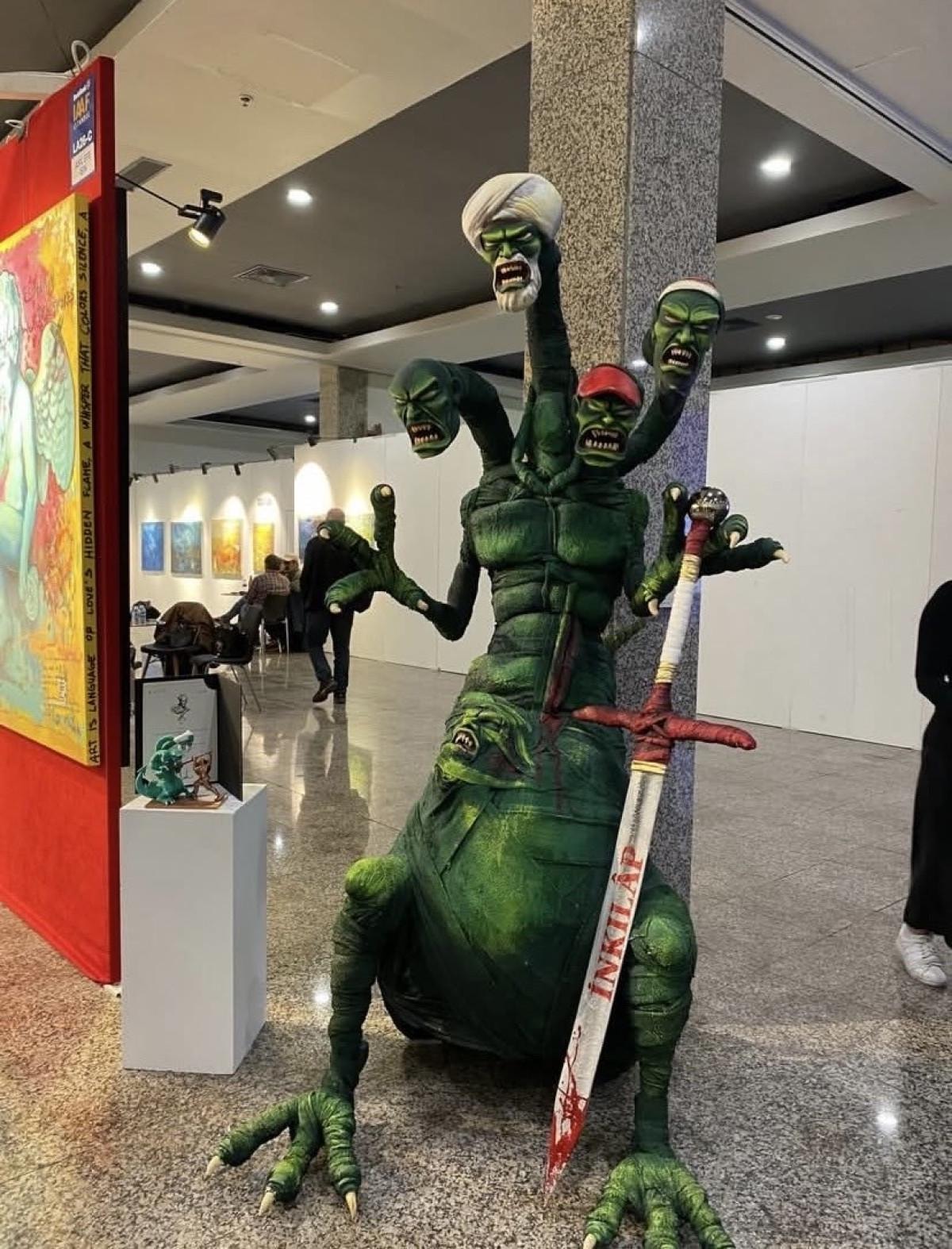 Fuarda gerçekleştirilen 'sanat' etkinliği kapsamında skandal bir heykele imza atıldı.