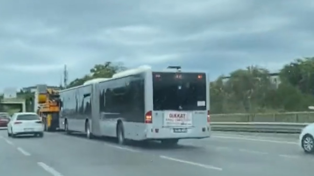 Kentte kaydedilen bir görüntü sosyal medyada paylaşıldı. Arızalanan metrobüsün daha çekici ile çekildiği görüldü.